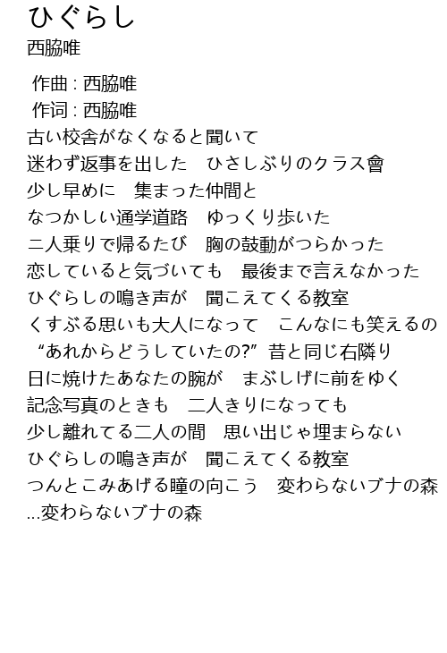 | [01:33.83] | ひぐらしの鳴き声が 聞こえてくる教室 |