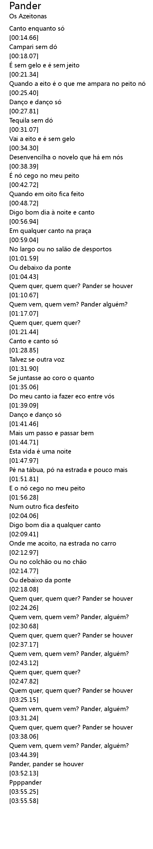 | [03:38.40] | Quem vem, quem vem? Pander, algue m? |