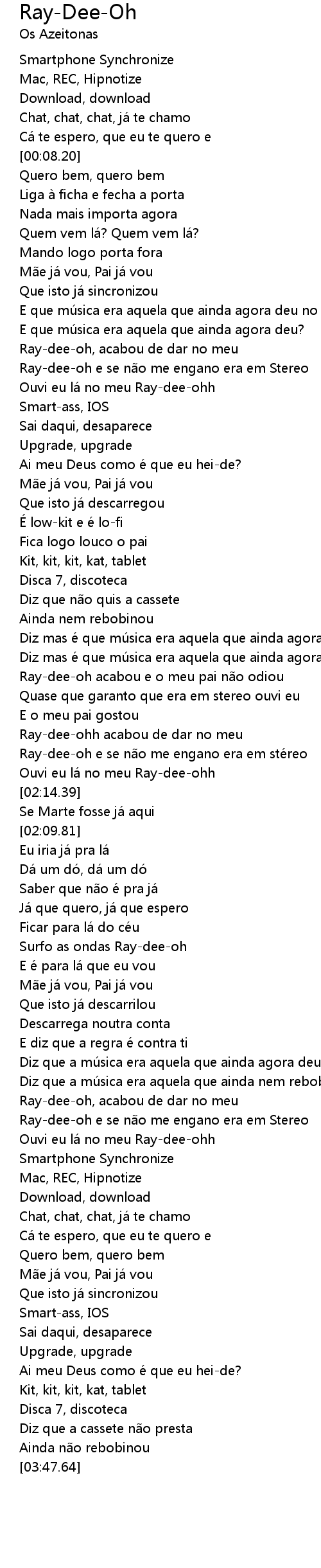 | [00:44.02] | Ouvi eu lá no meu Ray-dee-ohh |