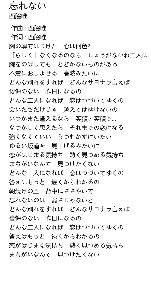 | Song | 忘れない |