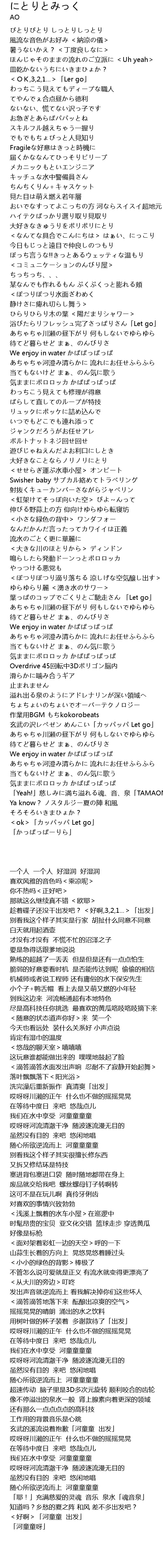 | [01:38.26] | あちゃちゃ河澄み清らかに 流れにお任せふらふら |