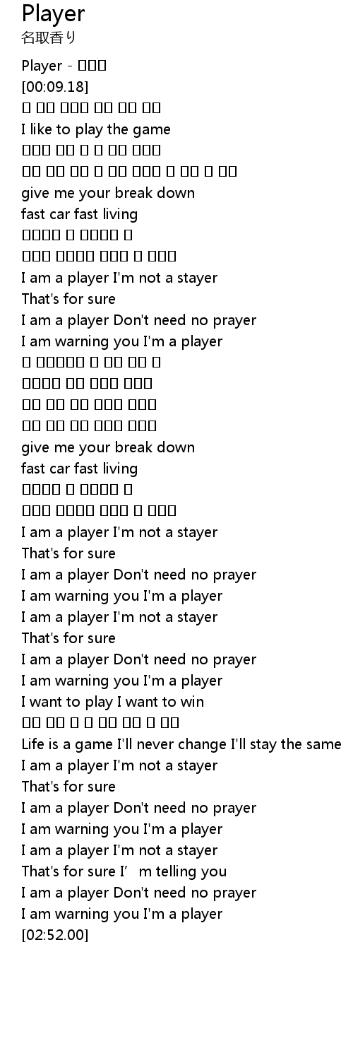 | [02:13.35] | Life is a game I' ll never change I' ll stay the same |