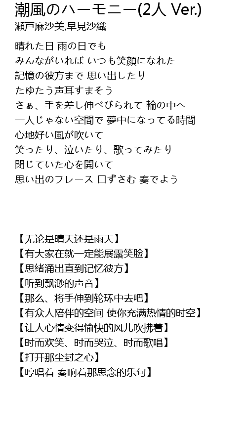 | [01:14.74] | 思い出のフレース 口ずさむ 奏でよう |