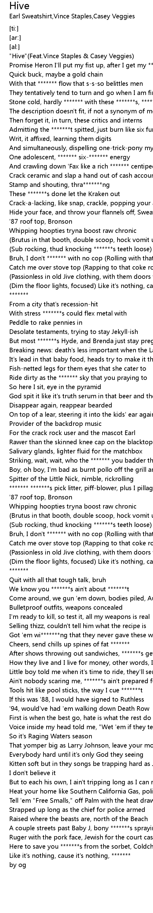 "Hive"(Feat.Vince Staples & Casey Veggies) |