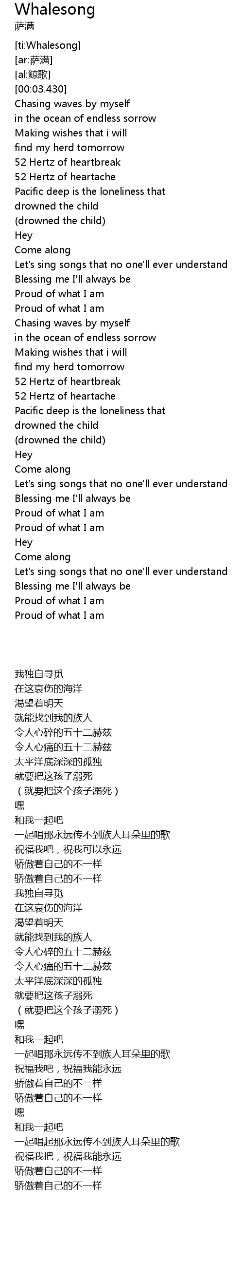 | [02:56.230] | Let's sing songs that no one'll ever understand |