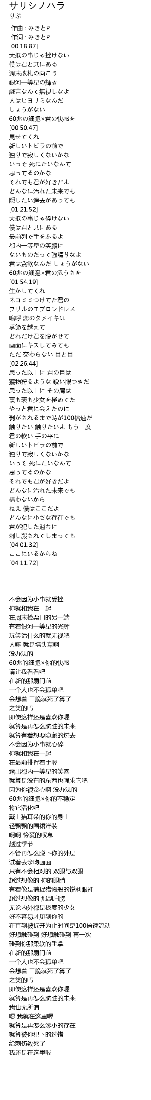 | [00:01.00] | 作词 : みきとP |