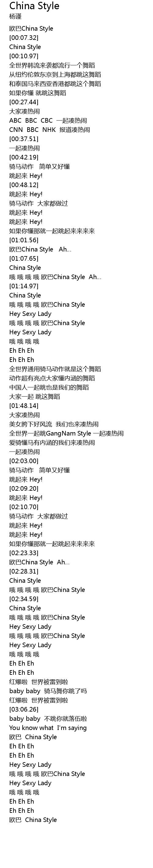 | [02:26.17] | 欧巴China Style Ah… |