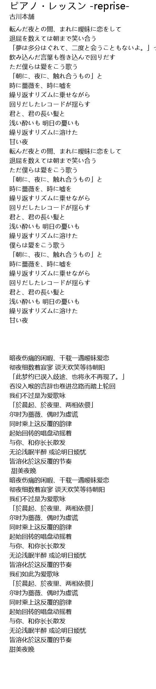 | Song | ピアノ・レッスン -reprise- |
