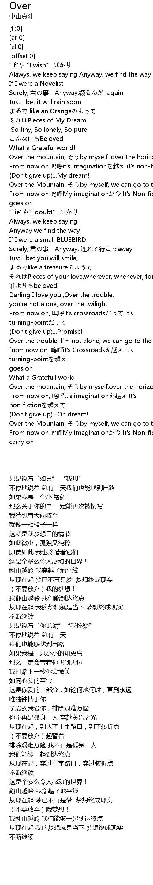 | [01:03.90] | Over the mountain, そうby myself, over the horizon |