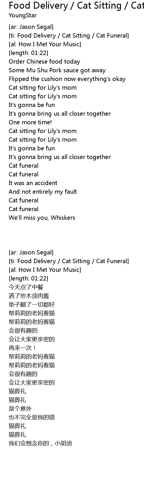 [ti: Food Delivery / Cat Sitting / Cat Funeral] |