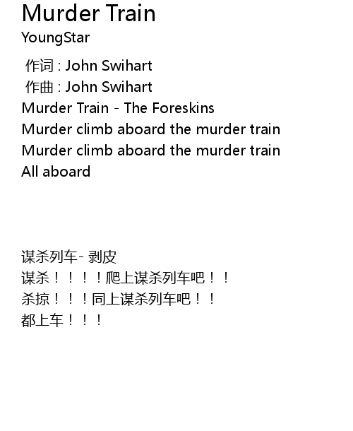 | [00:00.417] | Murder climb aboard the murder train |