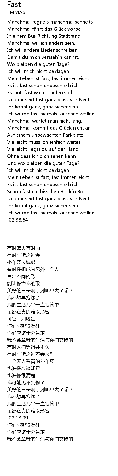 | [02:27.75] | Ich würde fast niemals tauschen wollen. |