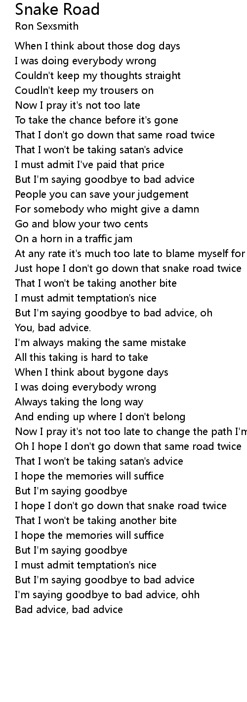 Just hope I don't go down that snake road twice |