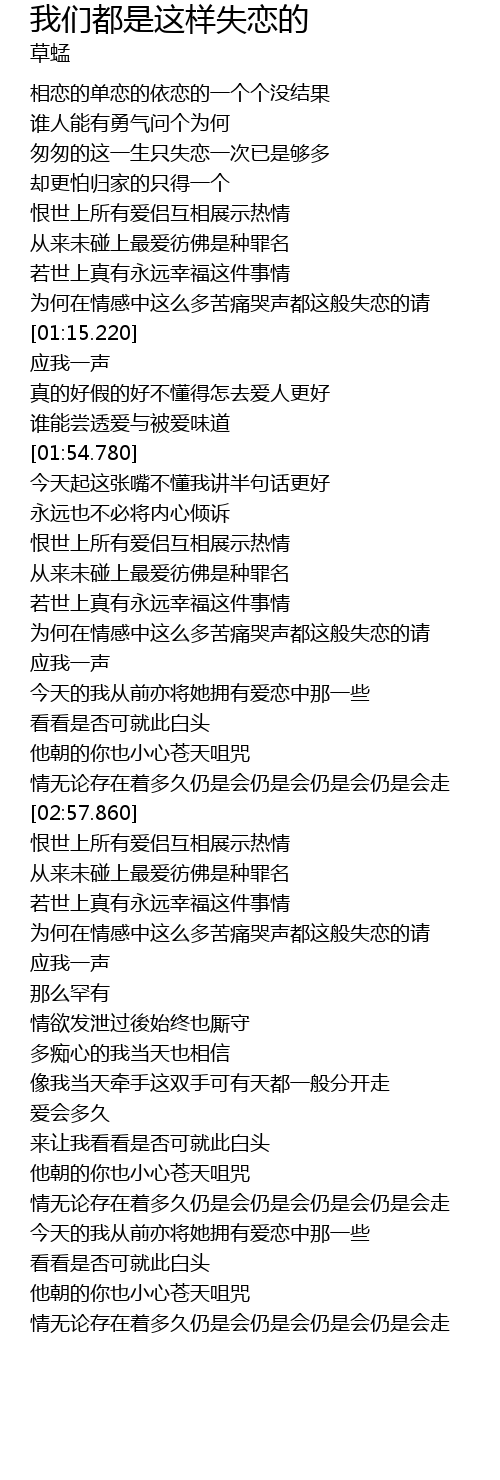| [02:26.400] | wei he zai qing gan zhong zhe me duo ku tong ku sheng dou zhe ban shi lian de qing |