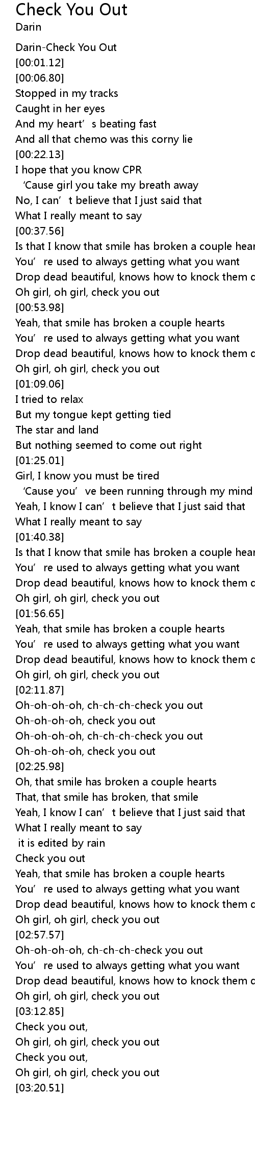 | [00:50.30] | Oh girl, oh girl, check you out |