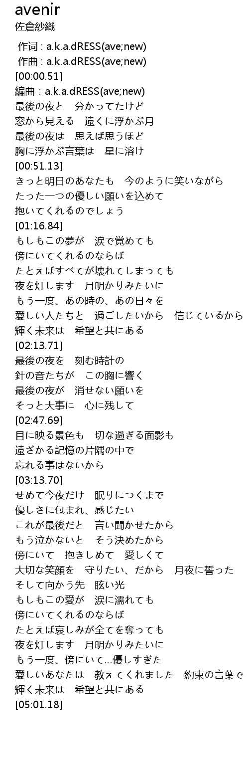 | [00:00.000] | 作词 : a.k.a.dRESS(ave;new) |