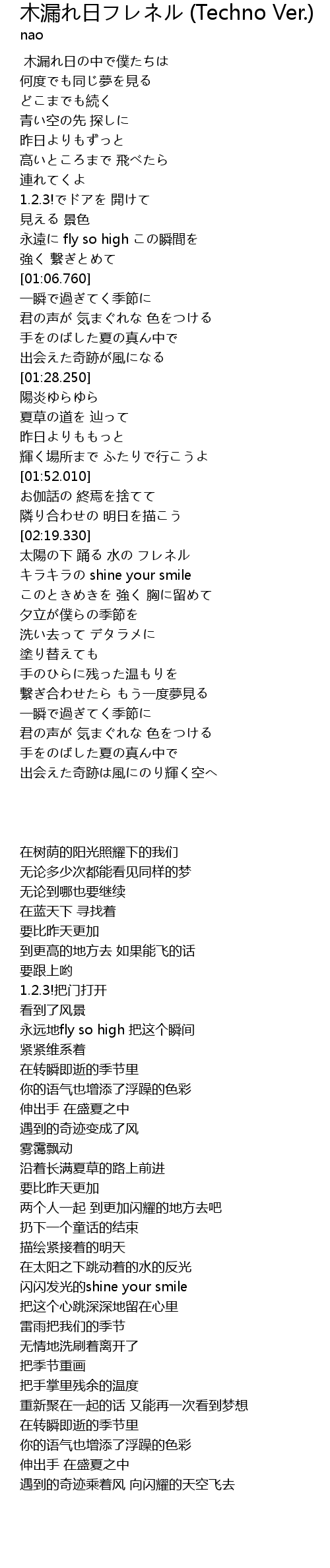 | [00:55.250] | yǒng yuǎn fly so high shùn jiān |
