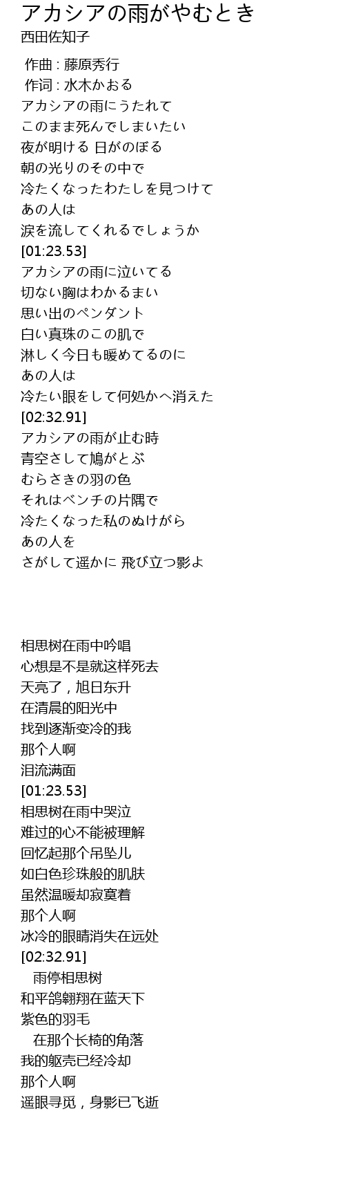 | [02:33.55] | アカシアの雨が止む時 |