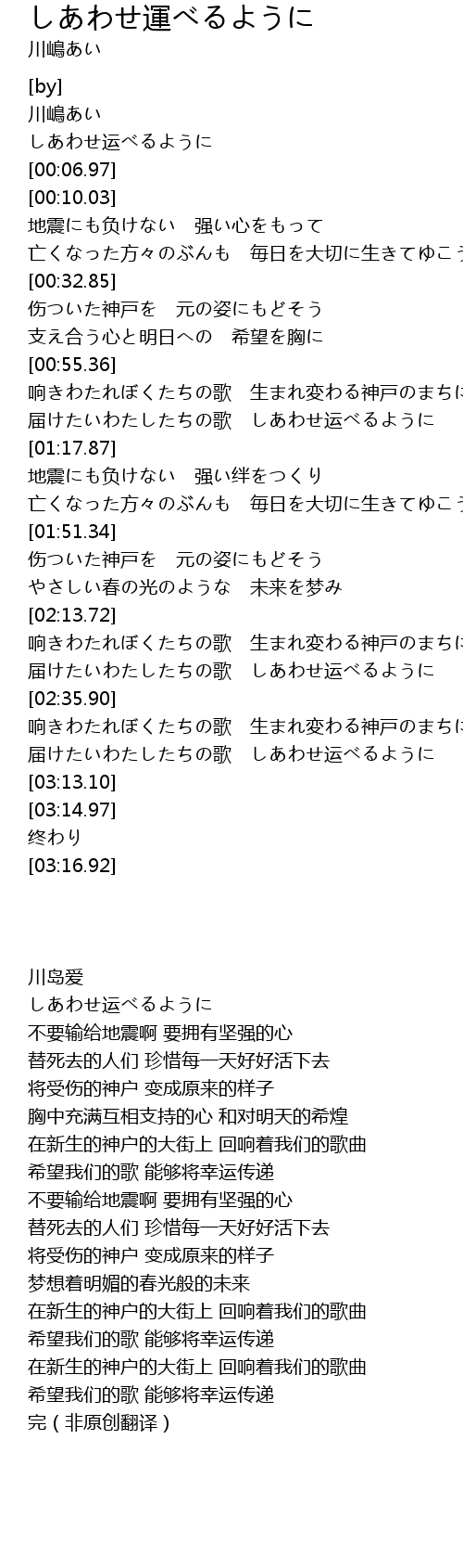 | [00:03.03] | しあわせ运べるように |