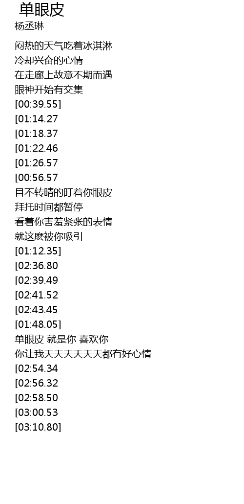 | [02:04.03] | 单眼皮 就是你 喜欢你 |
