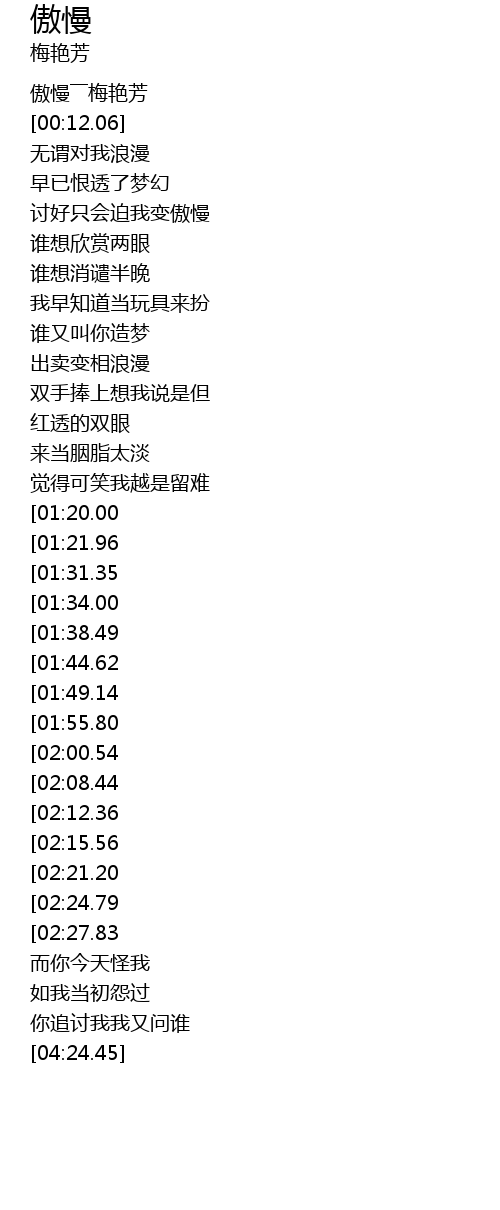 | [00:01.89] | 傲慢――梅艳芳 |