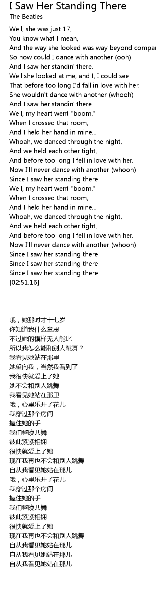 Song I Saw Her Standing There