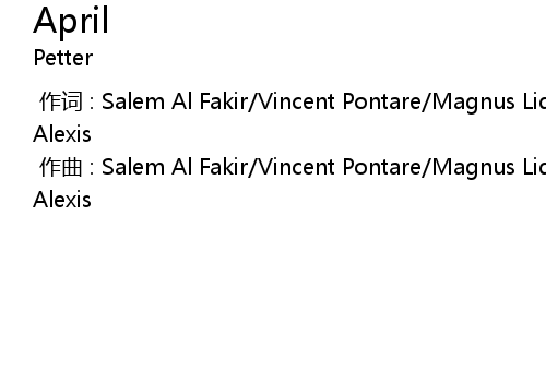 | [00:00.000] | zuò cí : Salem Al Fakir Vincent Pontare Magnus Lideh ll Petter Alexis |