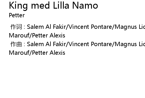 | [00:00.000] | zuò cí : Salem Al Fakir Vincent Pontare Magnus Lideh ll Namo Marouf Petter Alexis |