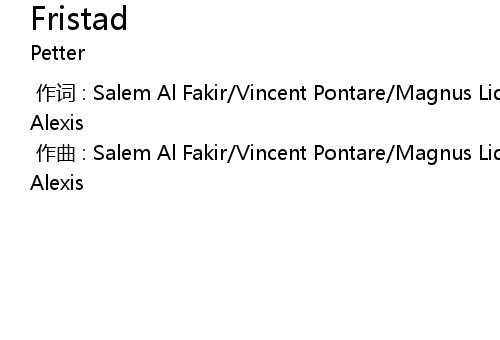 | [00:00.000] | zuò cí : Salem Al Fakir Vincent Pontare Magnus Lideh ll Petter Alexis |