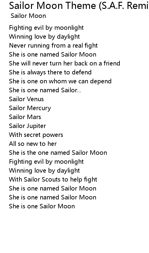 Sailor Moon Theme (S.A.F. Remix) Lyrics