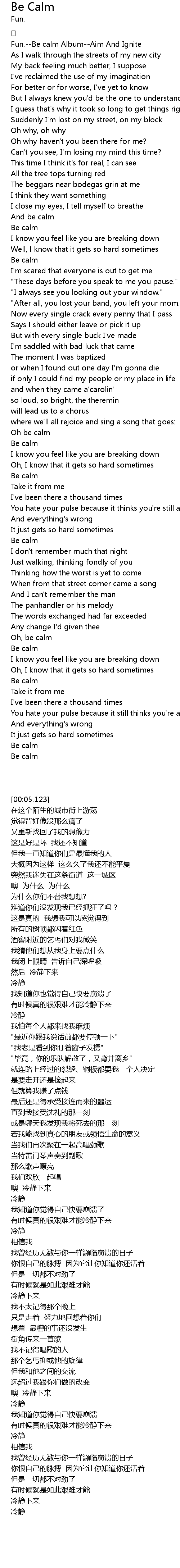 | [00:05.123] | Fun.--Be calm Album--Aim And Ignite |