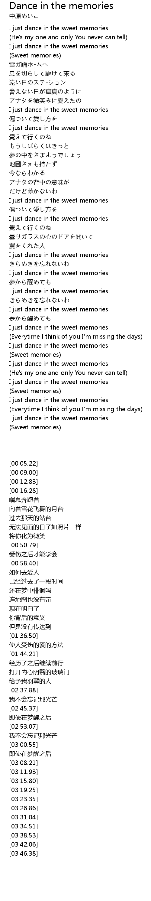 | [03:42.06] | (Everytime I think of you I'm missing the days) |