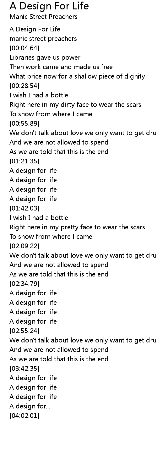 A Design For Life Lyrics
