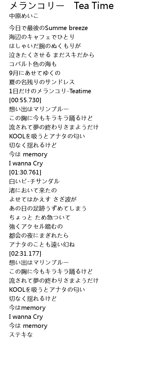 | [00:48.129] | 1日だけのメランコリ-Teatime |