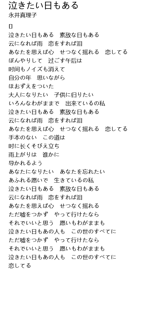 | Song | 泣きたい日もある |