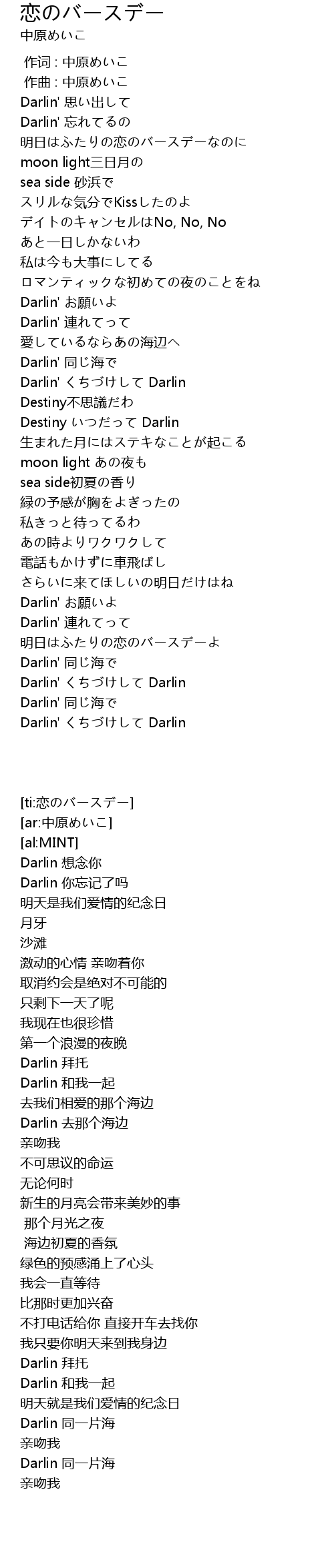 作词 : 中原めいこ |