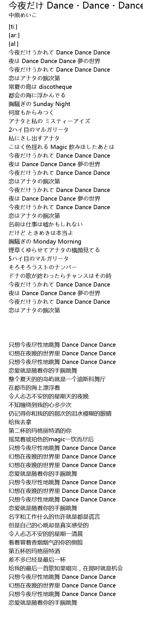 | [02:01.98] | 今夜だけうかれて Dance Dance Dance |