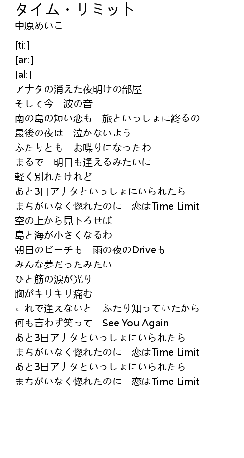 | [03:08.44] | hū liàn Time Limit |