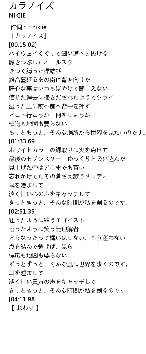 | [03:58.26] | きっときっと、そんな時間が私を創るのです。 |