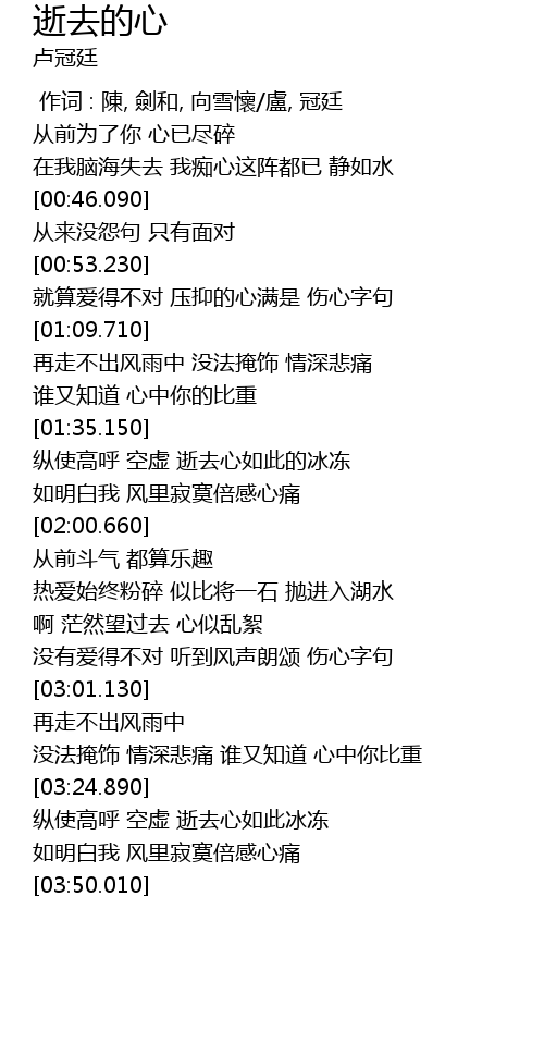 | [00:00.00] | 作词 : 陳, 劍和, 向雪懷/盧, 冠廷 |