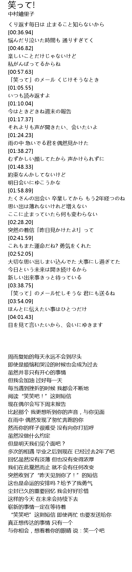 | [00:59.57] | 「笑って」のメール くじけそうなとき |