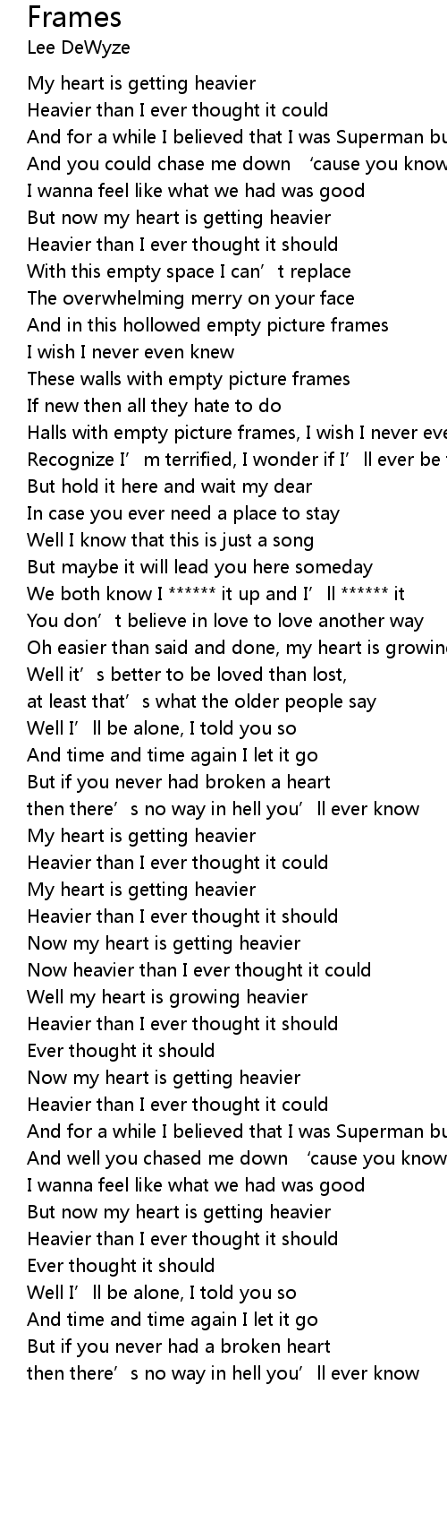| [01:03.07] | These walls with empty picture frames |