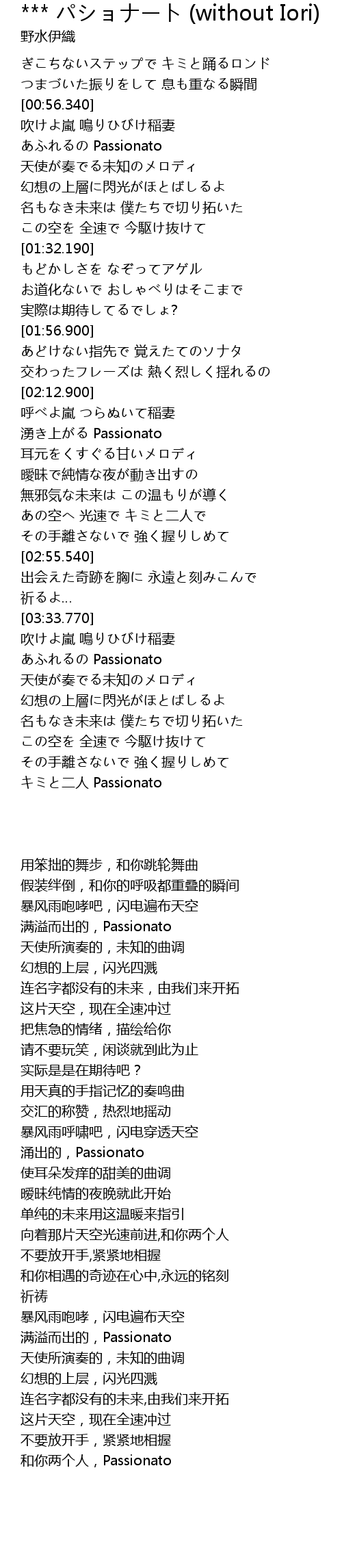 | [02:04.540] | 交わったフレーズは 熱く烈しく揺れるの |