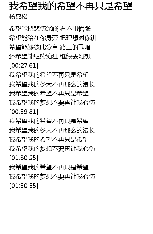 | [01:31.48] | 我希望我的希望不再只是希望 |