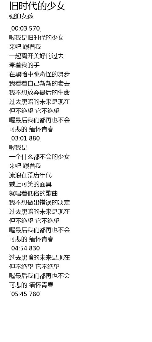 | [01:34.000] | 喔我是旧时代的少女 |