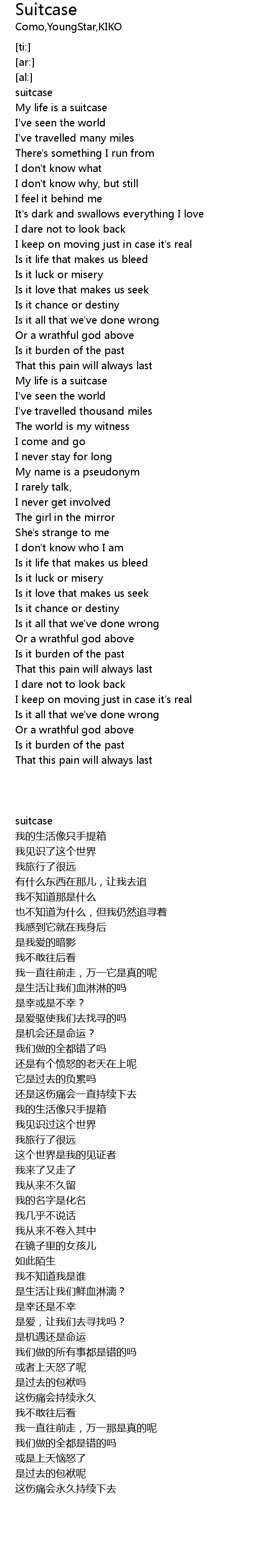 | [00:10.30] | My life is a suitcase |