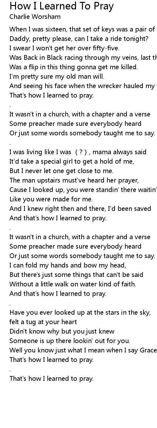 | [01:49.020] | It wasn't in a church, with a chapter and a verse |
