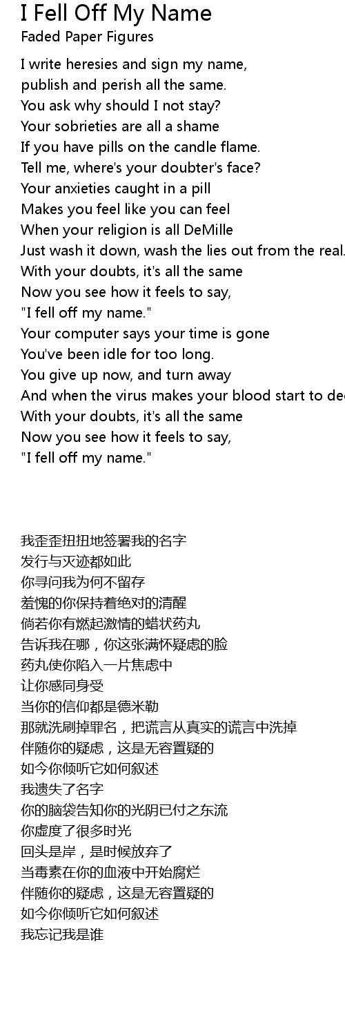 I Fell Off My Name Lyrics