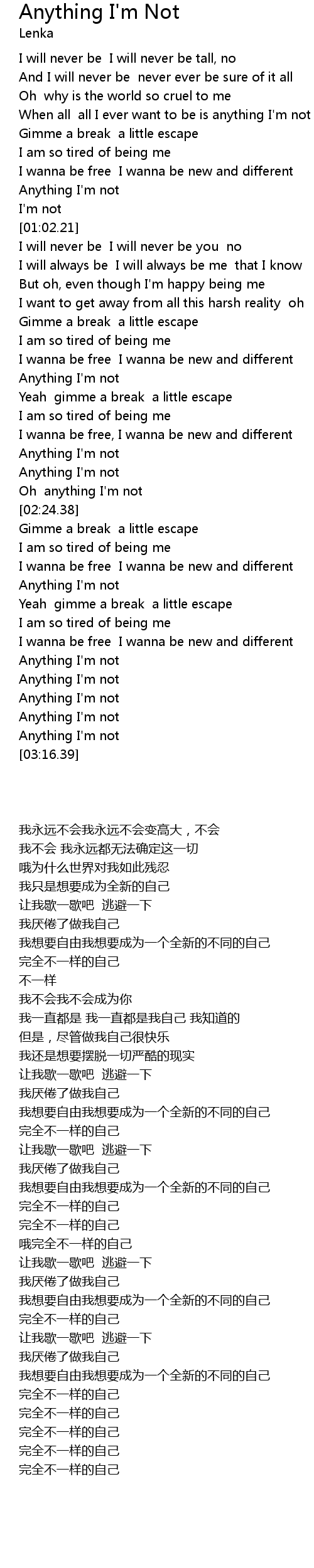 | [03:13.40] | Anything I'm not |