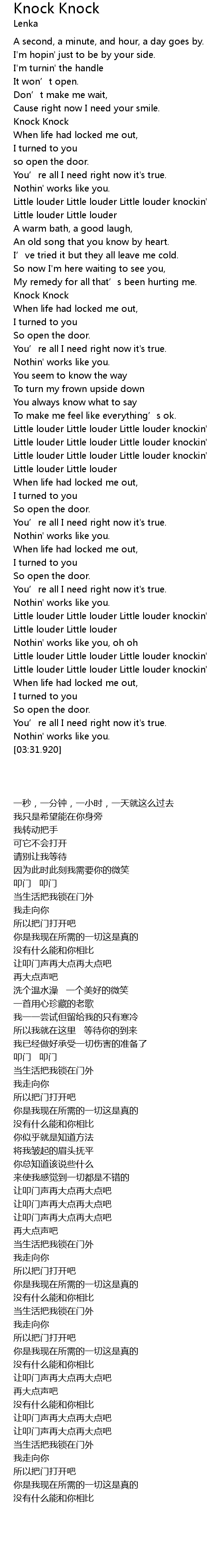 | [02:16.40] | Little louder Little louder Little louder knockin' |